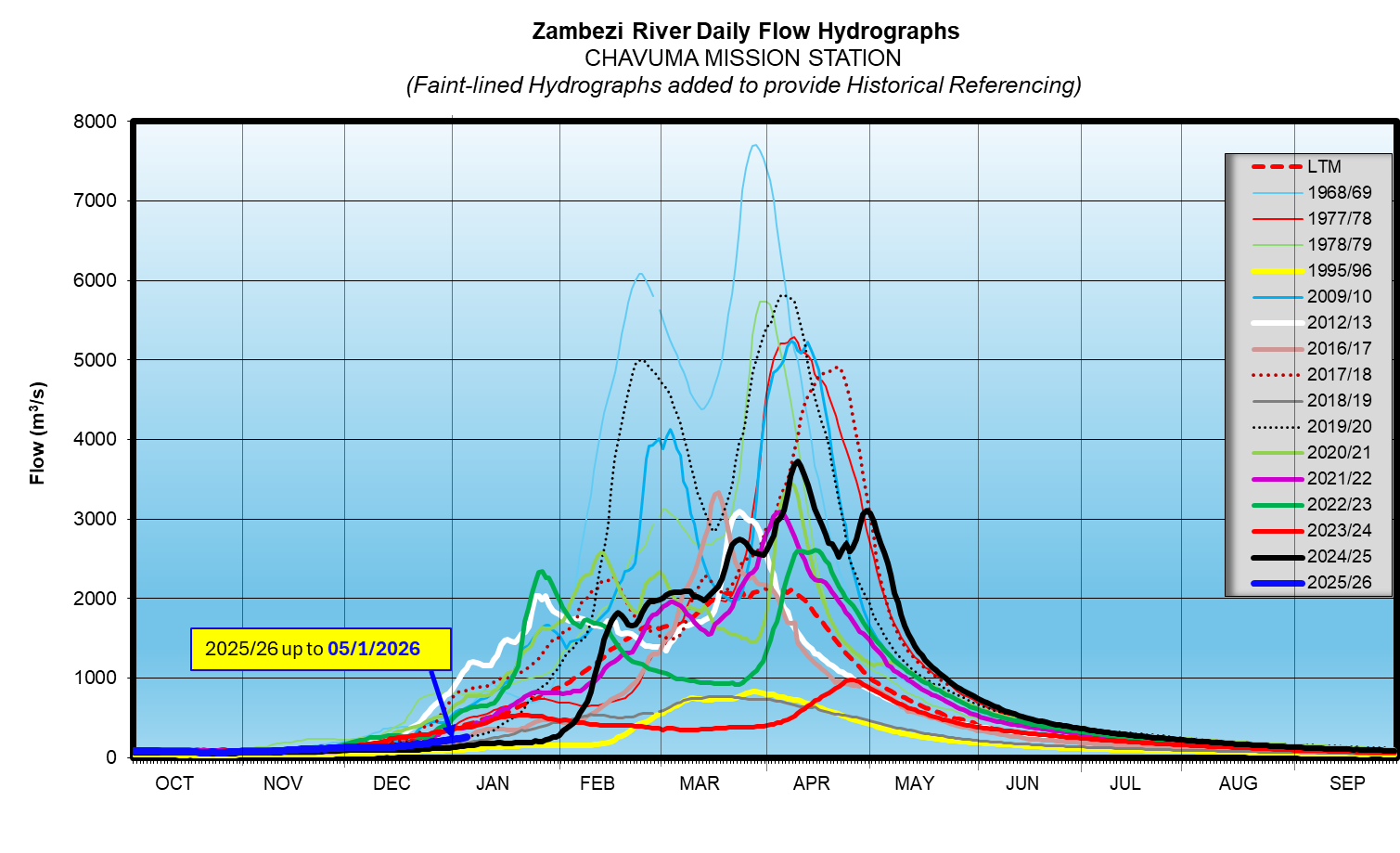 The Zambezi River flows at Victoria Falls are decreasing, closing the period under review at 303m3/s on 3rd October 2022. The flow observed on the same date last year was 338m3/s.